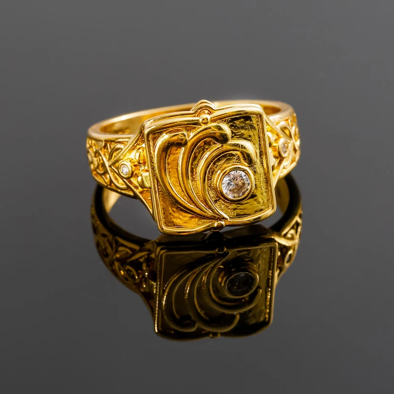 Кольцо мужское, с резьбой в виде золотого двуглавого орла
