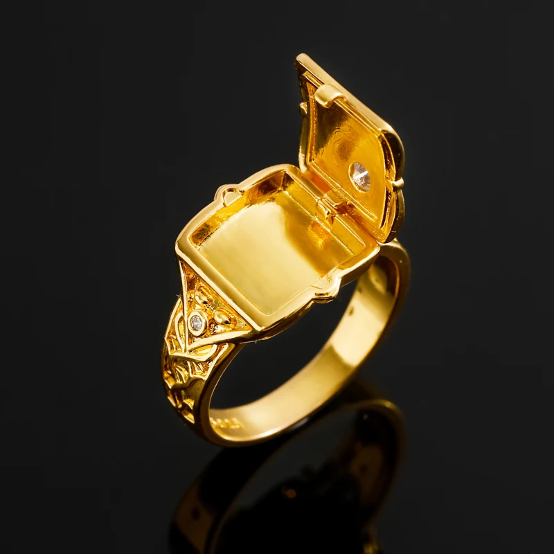 Кольцо мужское с квадратным черепом и открытой крышкой, маленькое к...