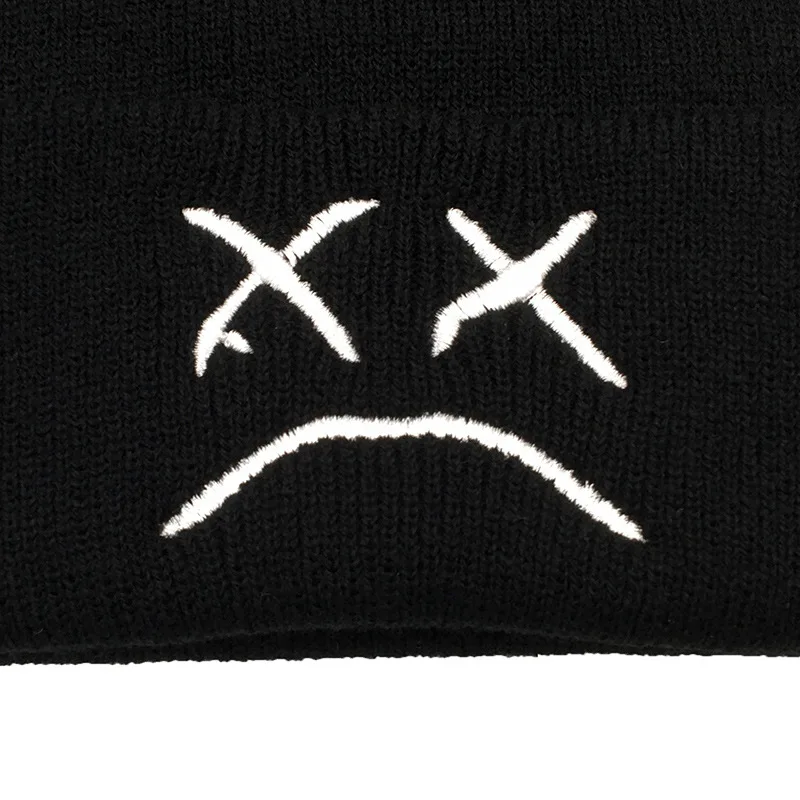 Шапка-бини в стиле хип-хоп зимняя вязаная шапка с грустными выражениями женская теплая шерстяная шапка с вышивкой для мужчин Кепка в стиле хип-хоп мужская шапка