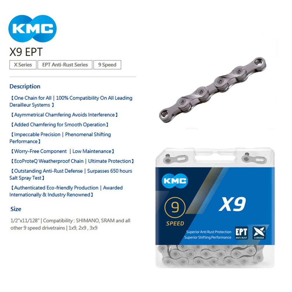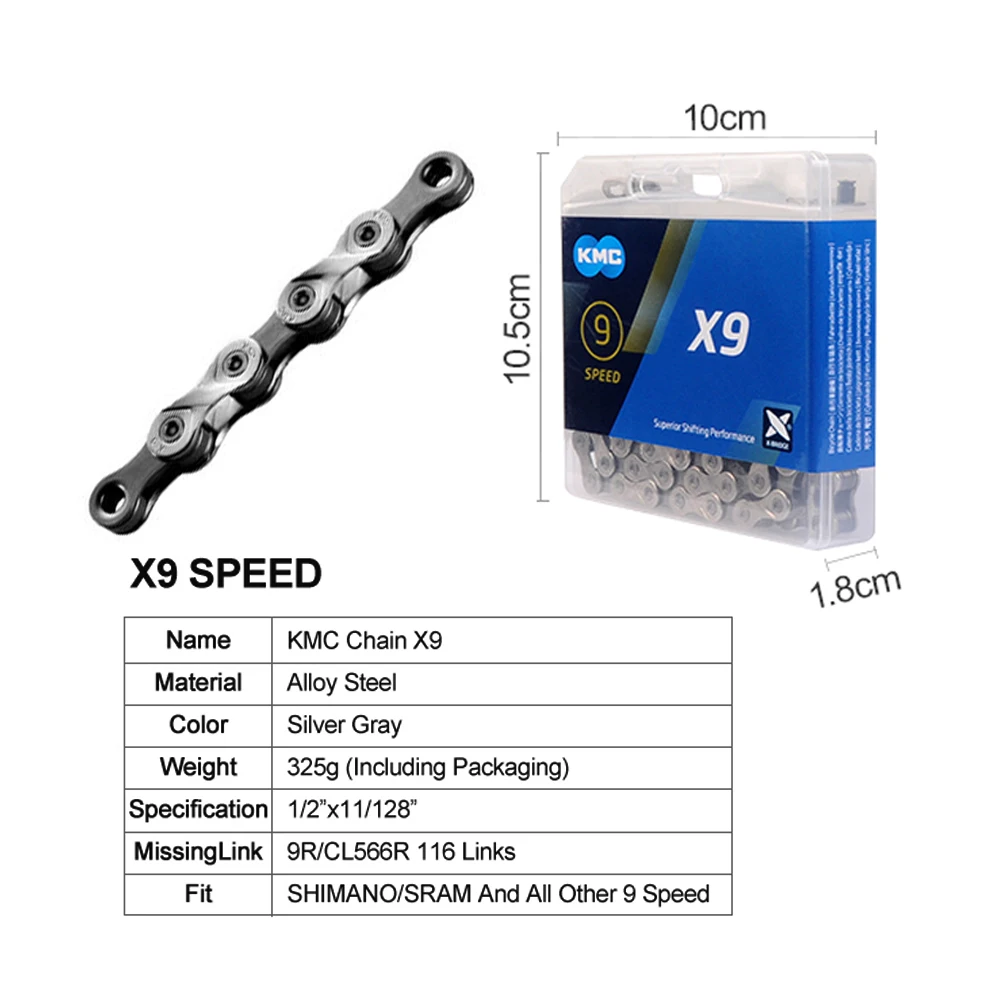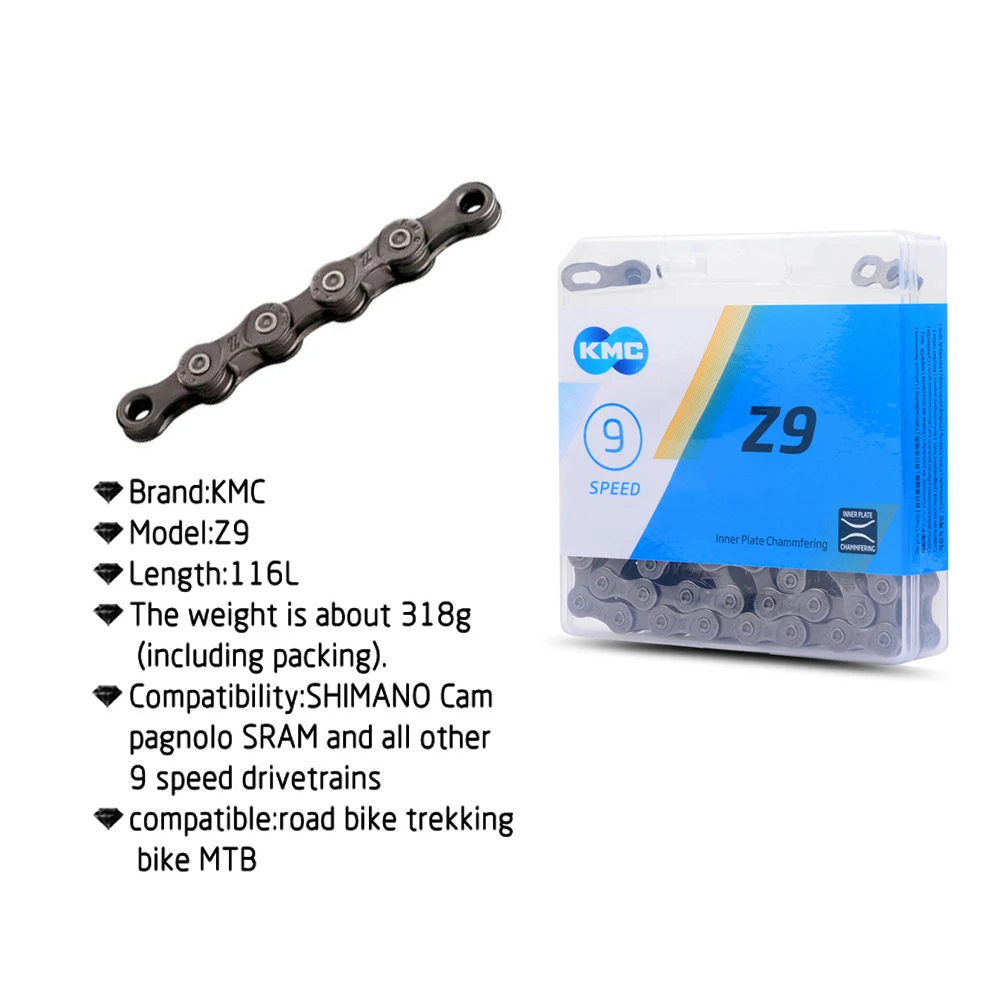 KMC Z9 X9 X9EPT MTB цепь для дорожного велосипеда 116L 9 цепь для скоростного велосипеда Magic Button Mountain с оригинальной коробкой