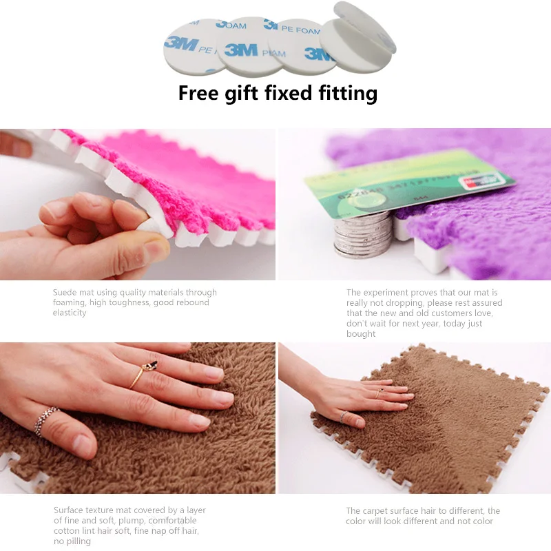 Характеристики: Название: сшитый ковер Материал: вельвет + EVA Пластиковая пена Размер: 30*30*1 (см)/25*25*1 см Цвета: как на картинке