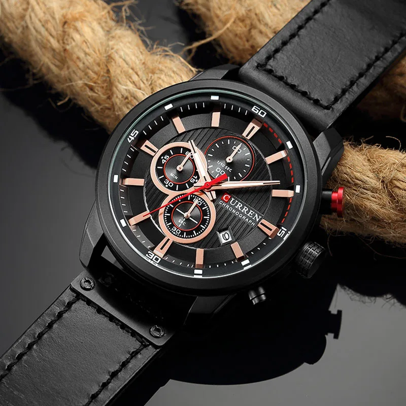 Часы CURREN Мужские кварцевые с хронографом, в стиле милитари, с кожаным ремешком, 8291