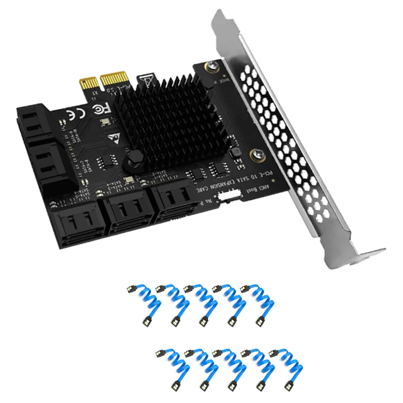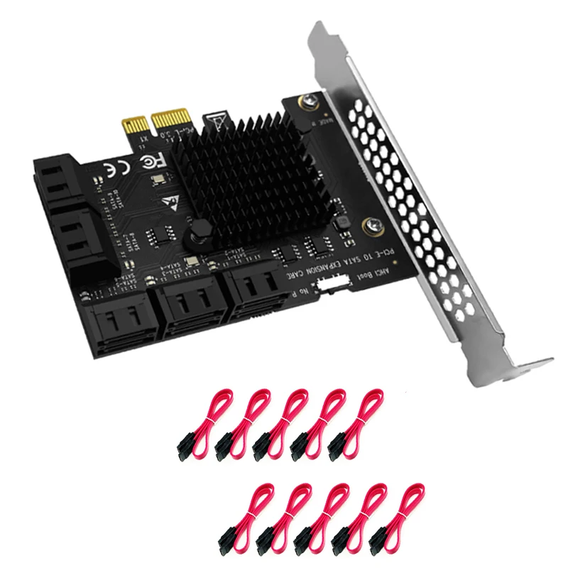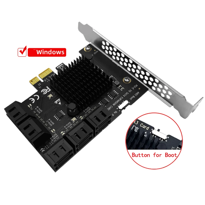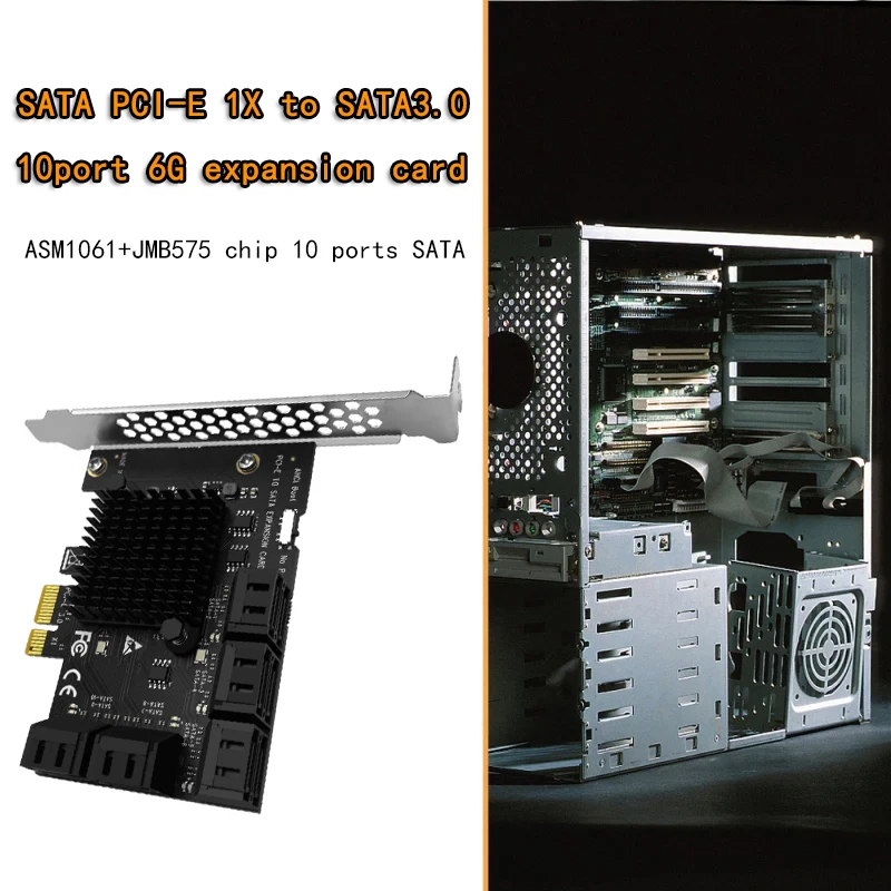 Адаптер Chi a Mining Riser ASM1061 JMB575 SATA PCIe, 10 портов SATA III к PCI Express 3,0 X1, контроллер, плата расширения для Windows