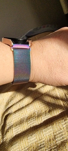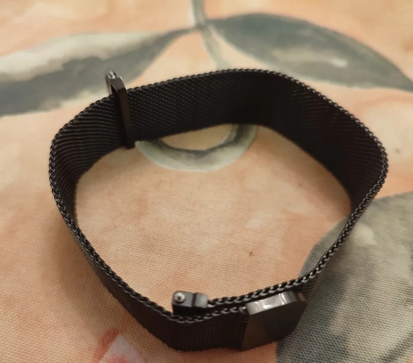 Ремешок пришел быстро. На Amazfit GTS 2e встал легко, штырьки были в комплекте. Для некрупного запястья размер оказался подходящим. Магнит сильный, фиксируется уверенно , но по виду отличается от представленного на фото. Регулировка удобная. По весу - лёгкий. НО основной минус - края ремешка с торца грубые, почти острые и цепляющие. А это значит, что манжеты рубашек разлохматятся моментально. То есть ремешок пригоден только для ношения с коротким рукавом, что жаль.