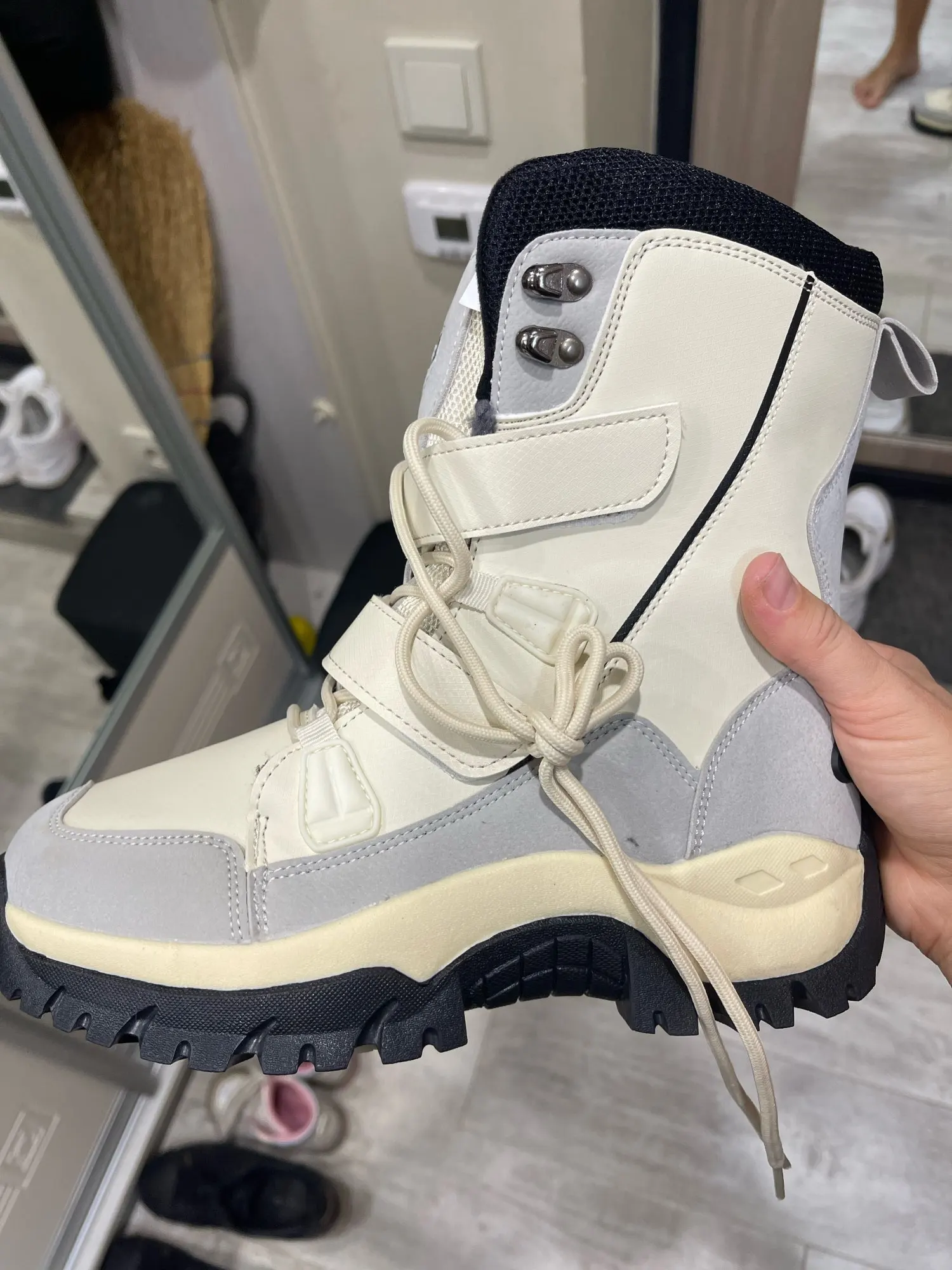 Есть 2 момента: 1- написано водонепроницаемый, это как? Если нет защиты между язычком и берцем, снег попадет, подошва хоть и высокая, но даже легкой мембраны нет. 2- на фото видно как с боковин сшито не аккуратно, куски материала близко друг другу, на рекламных фото есть 1-2 мм запас, а по факту нет. Кто то скажет, что хотел за такие деньги получить? Ну я ж за деньги, не бесплатно! В остальном вроде нормально, склеено аккуратно, подошва не скользит, зимой протестим, если вспомню, дополню отзыв! С продавцом не общался, всё после тестов!