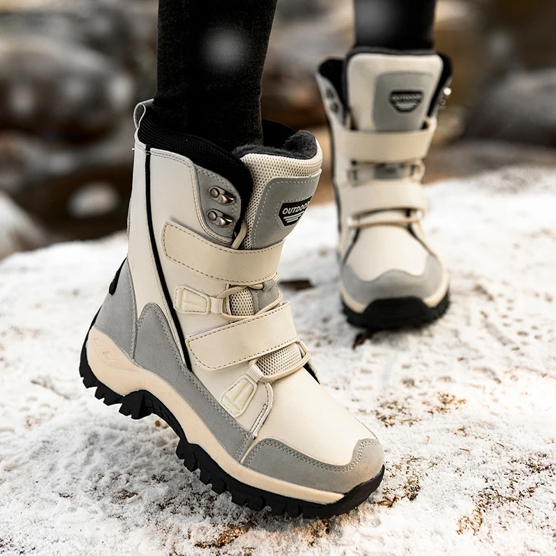 Ботинки женские зимние, теплые, плюшевые, до середины икры, на шнуровке, водонепроницаемые, для пешего туризма, размер 42