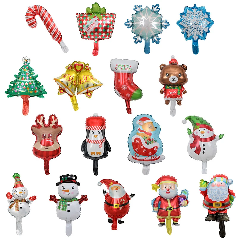 10 шт., новогодние надувные мини-шары в виде Санта-Клауса, снеговика, лося