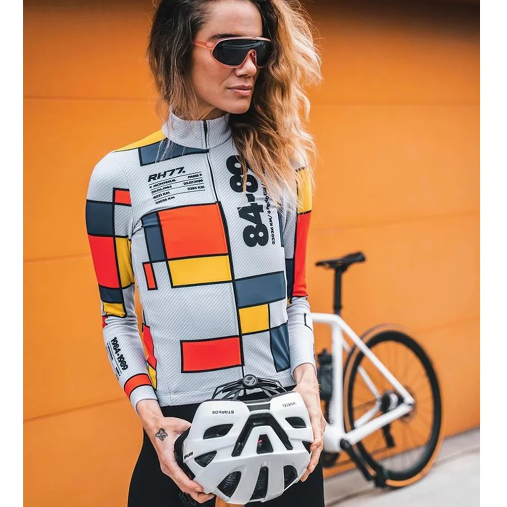Женская зимняя велосипедная куртка RH77, с длинным рукавом и тремя карманами, велосипедная одежда, 2021