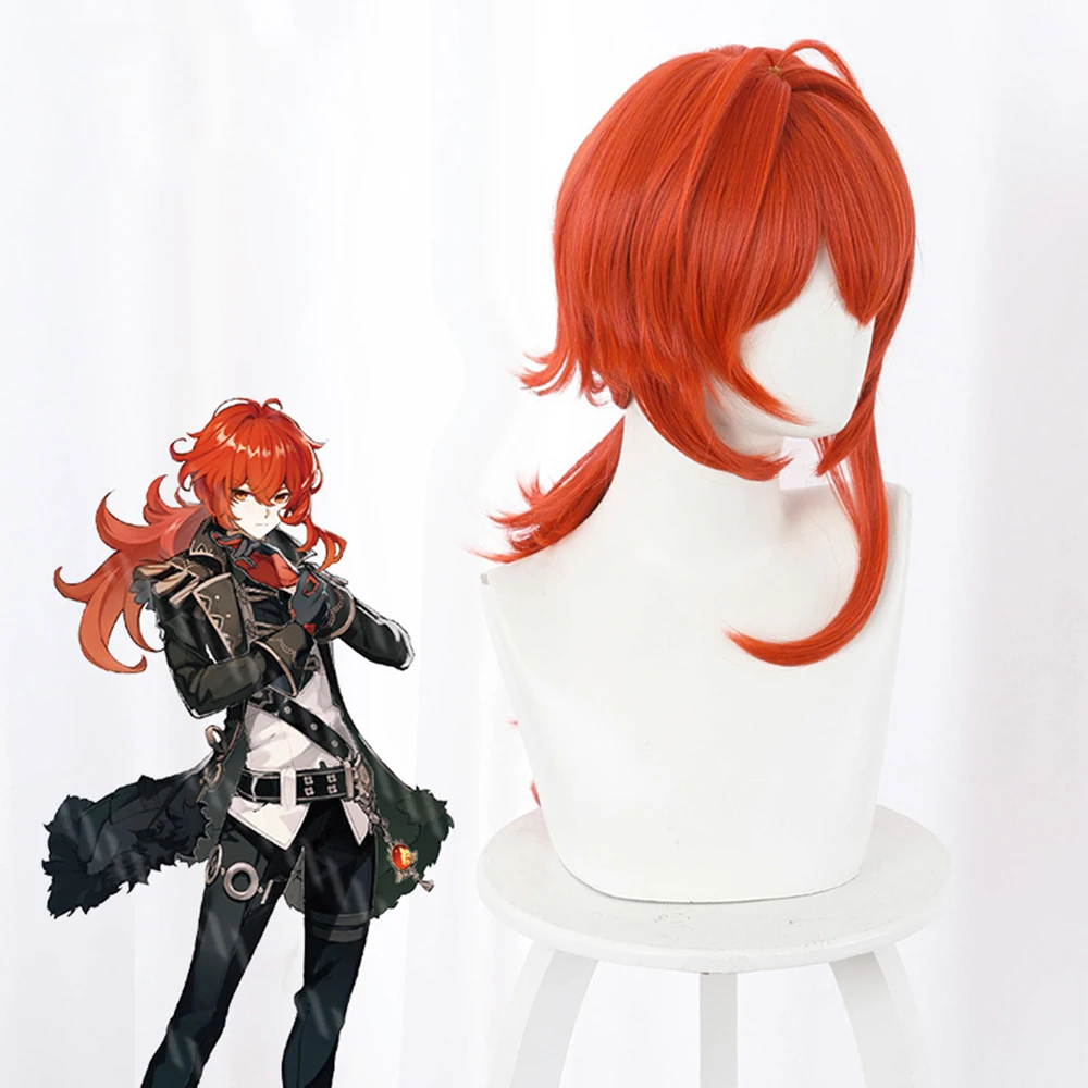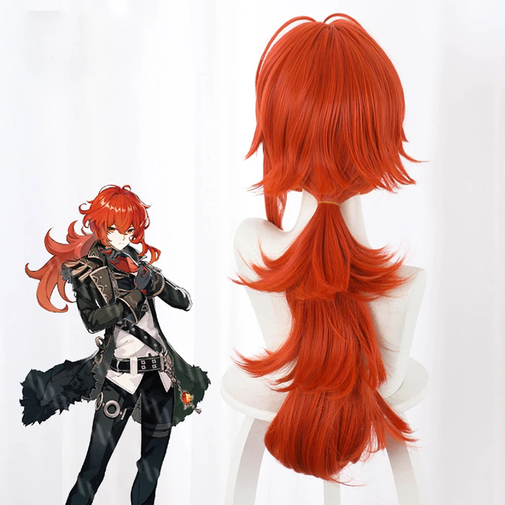 Genshin ударопрочный синтетический парик для косплея 60 см длинный красный парик для косплея термостойкий парик Хэллоуин + бесплатная шапочка парика