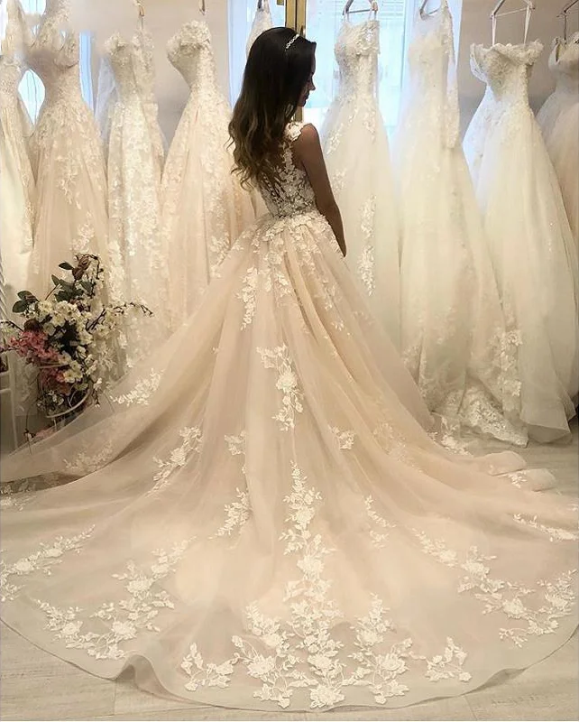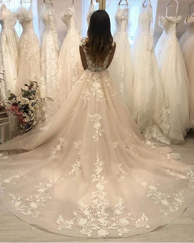 Женское свадебное платье с V-образным вырезом и аппликацией