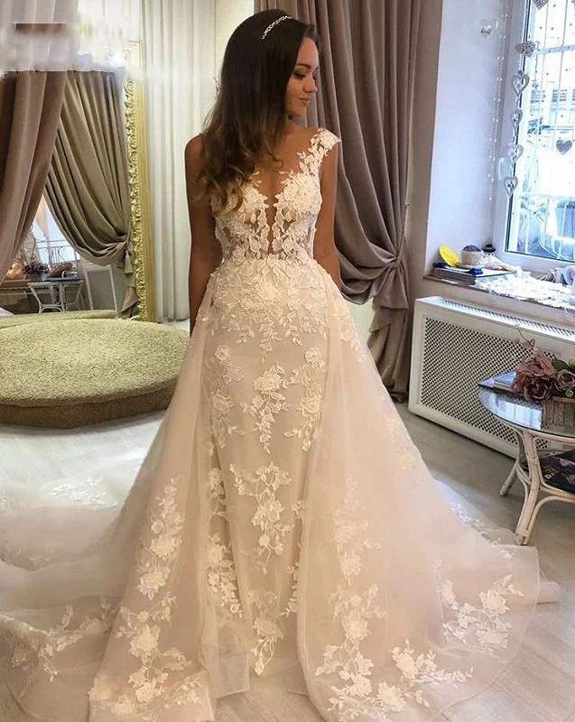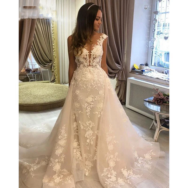 Кружевные свадебные платья с юбкой-годе со съемным цветочным рисунк...