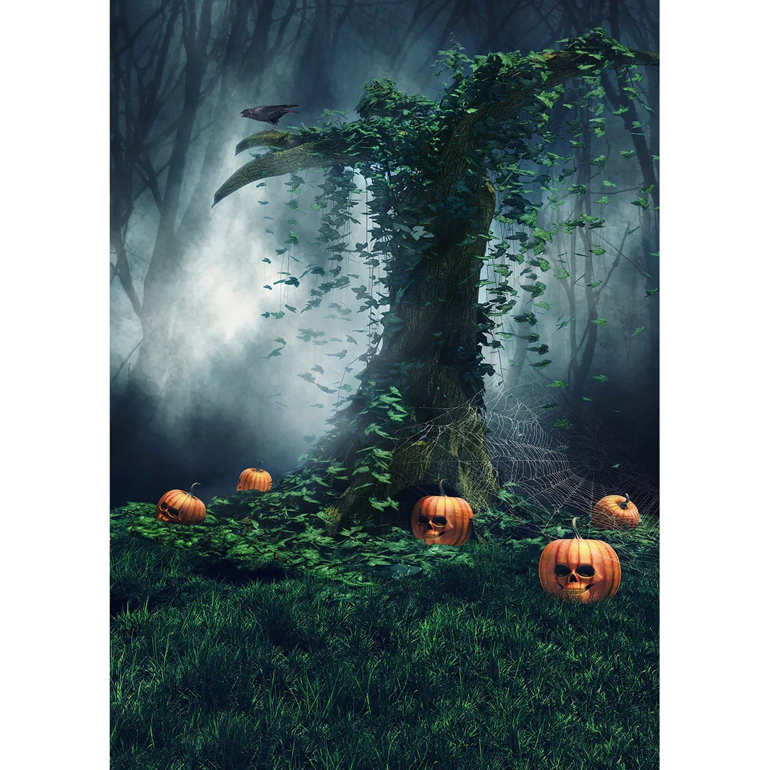 styleHalloween Night Forest Pumpkins Photography Backdrops