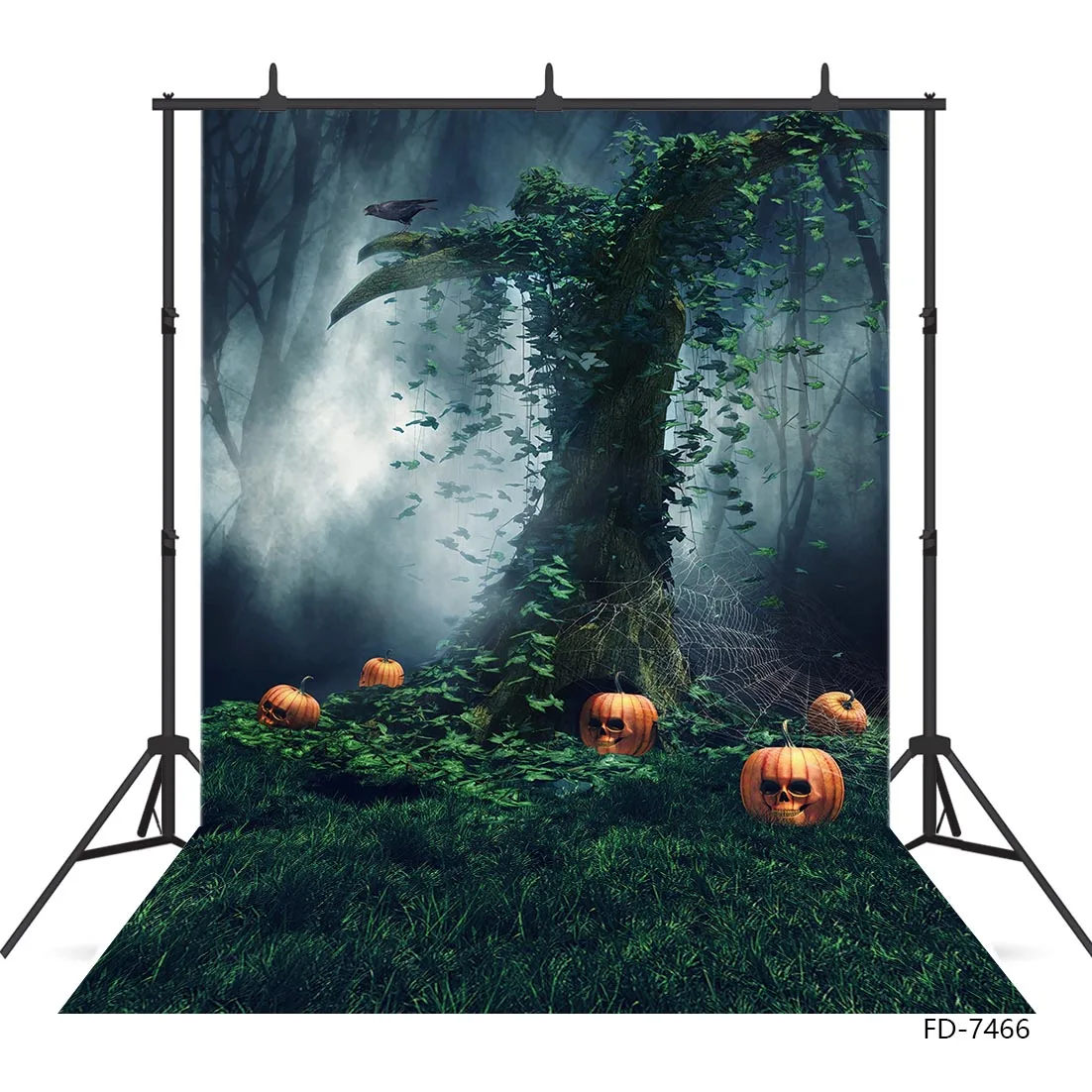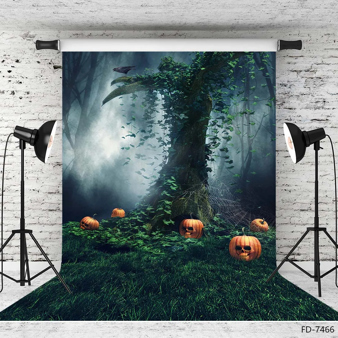 Виниловые тканевые фоны с тыквами ночного леса на Хэллоуин для детской портретной фотосъемки в фотостудии