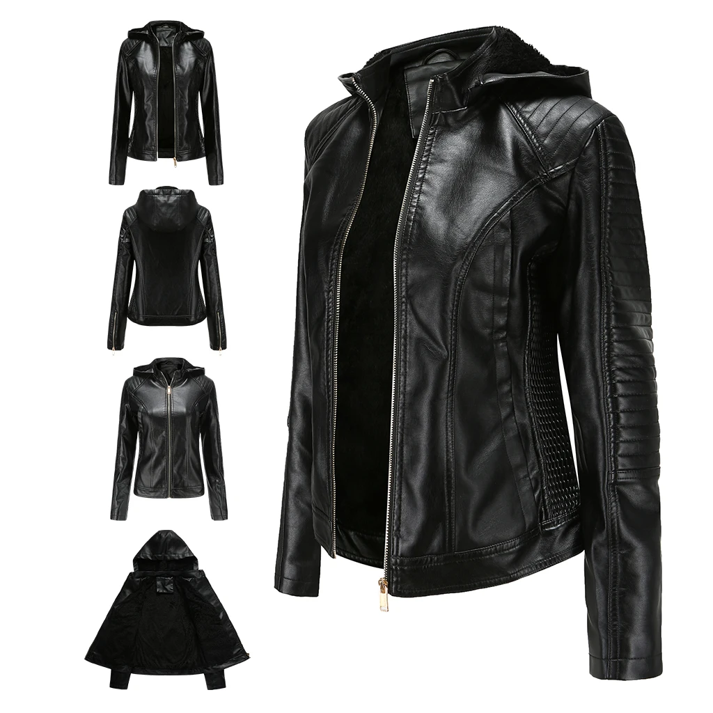 Однотонная куртка из искусственной кожи на молнии, Женская весенне-осенне-зимняя туника, верхняя одежда 2021, Женская Вельветовая куртка большого размера с капюшоном