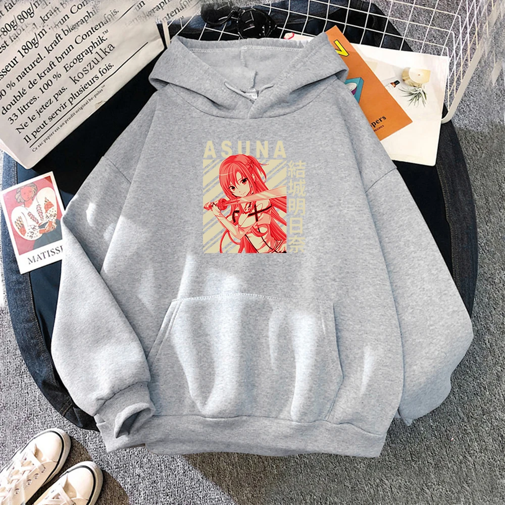 Толстовки с капюшоном с изображением аниме меча онлайн, женская зимняя одежда Yuuki с капюшоном, мужские свитера с изображением графики, винтажная одежда