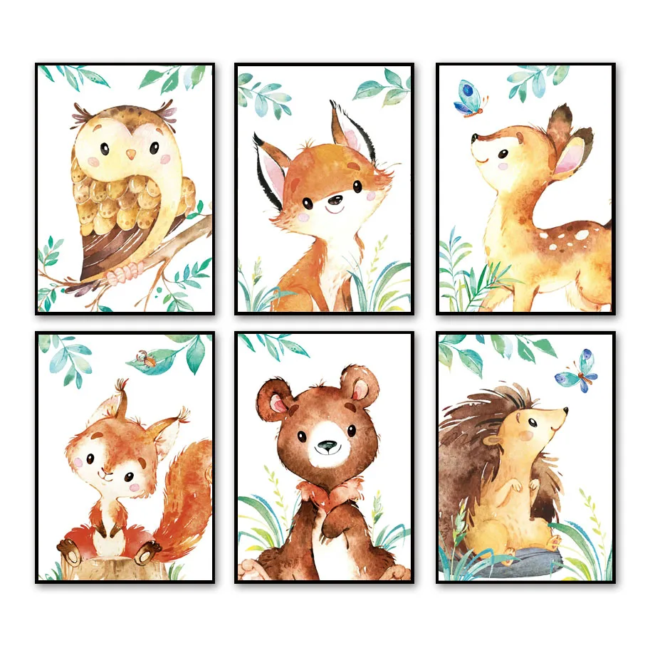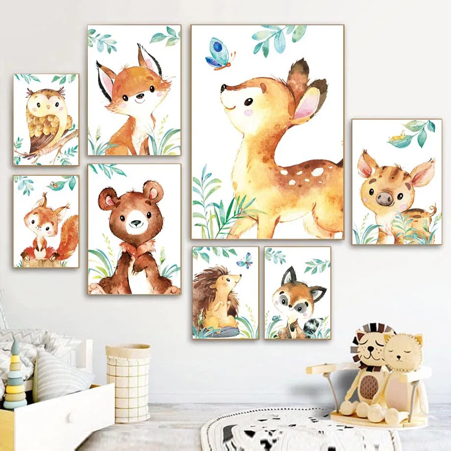 Медведь, олень, сова, кролик, лиса, барсук, настенная Картина на холсте, скандинавский постер в стиле бохо для детской комнаты, настенные картины, декор для детской комнаты