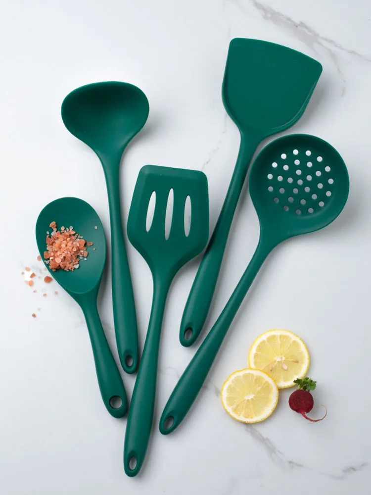 Набор термостойких силиконовых кухонных принадлежностей, зеленый шпатель для супа, ложка-кисточка ковш, паста, дуршлаг, антипригарная посуда, кухонные инструменты