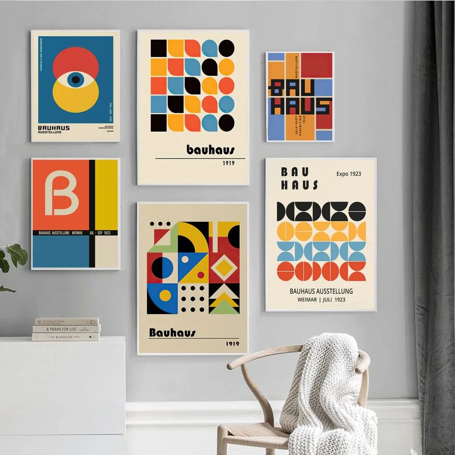 Абстрактные Геометрические линии Bauhaus Ретро скандинавские современные настенные художественные холст картины плакаты и принты картинки для декора гостиной
