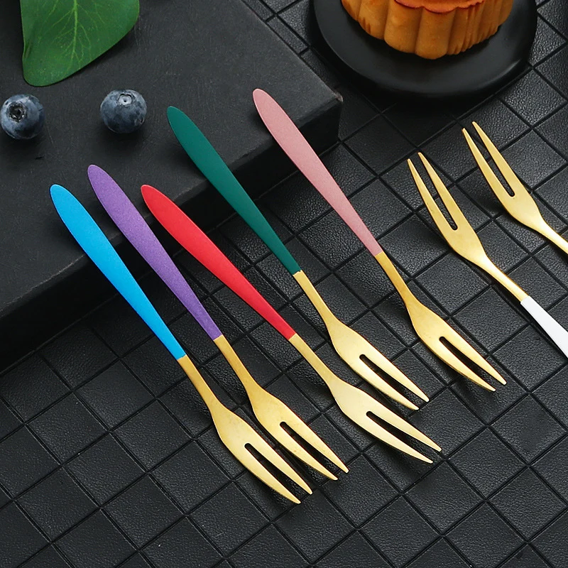 Набор вилок и столовых приборов для фруктов, 1 шт., золото Десертные Вилки для торта, нержавеющая сталь, мини-вилка, для вечерние, вилка для улиток, ресторанов