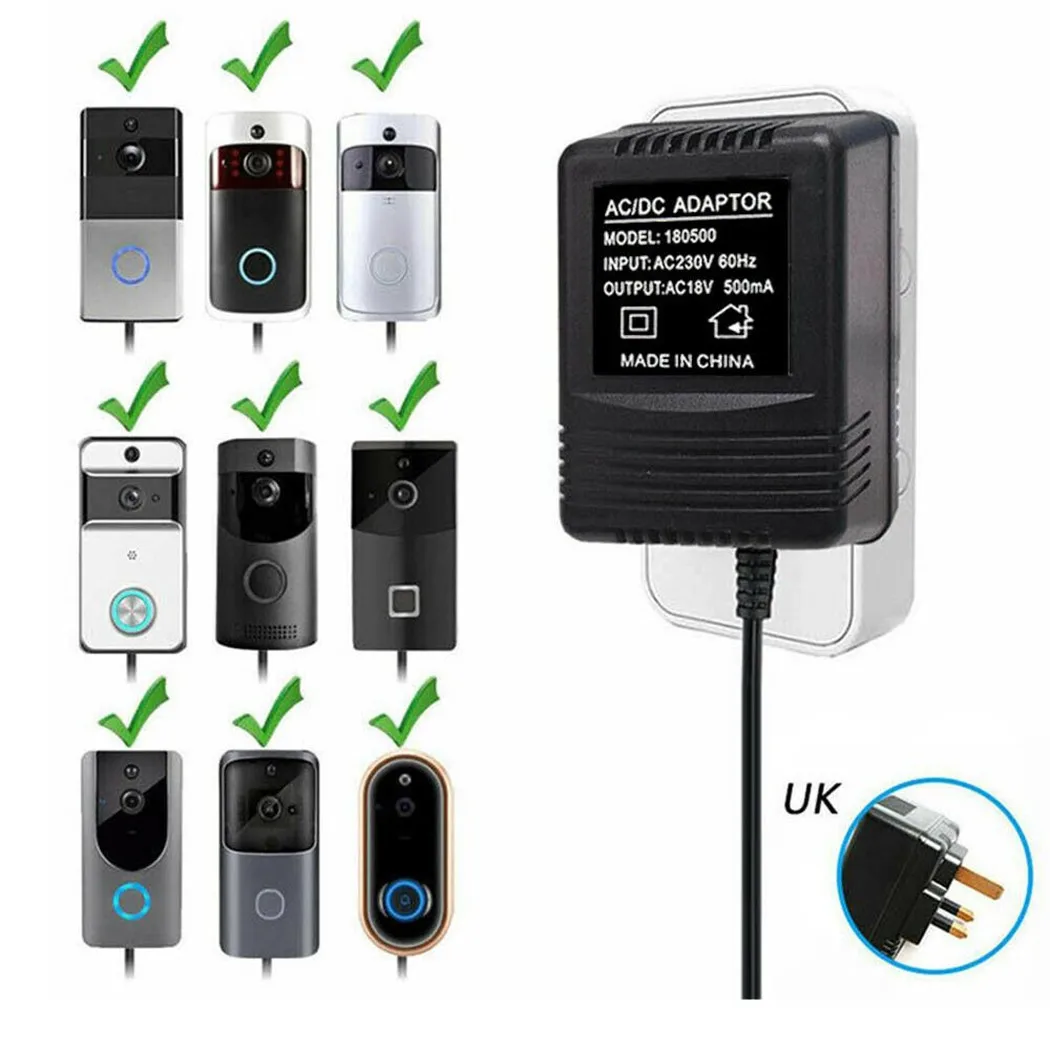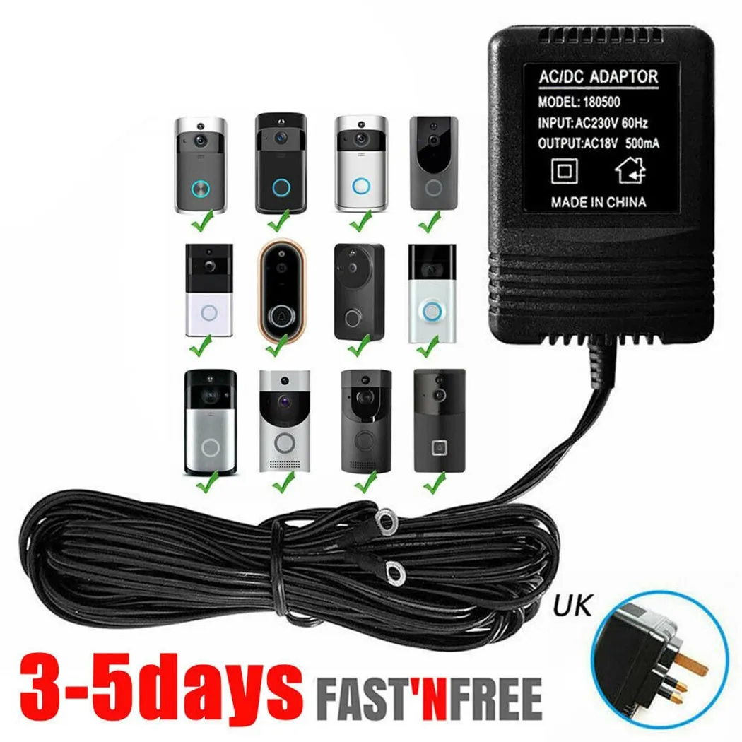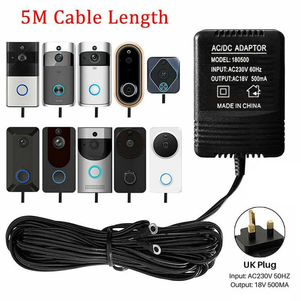 5 м 18 в 500 мА 9 Вт блок питания зарядное устройство для видео кольца дверного звонка трансформатор Великобритания адаптер штекер настенный