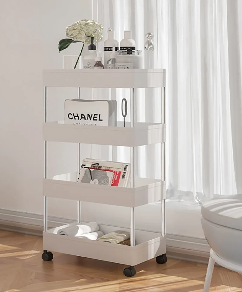 4 уровня тонкий тележка для хранения в дизайн, который может быть использован в труднодоступных местах в вашем доме для хранения. Подходит для шкафов, кухонь, ванных комнат, гаражей, прачечных комнат, офисов или между стиральной машиной и сушилкой.
