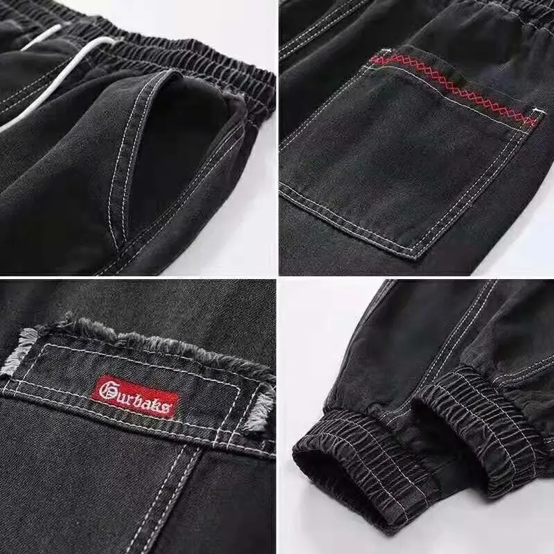 Джинсовые мужские шорты, свободные брюки с широкими штанинами, джинсы-багги, уличная одежда, большие размеры, осеньзима