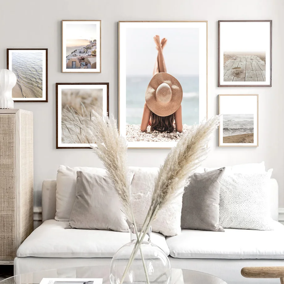 Картина на холсте с изображением стены, для пляжа, для девочек, для серфинга, тростника, трап, цветок, волны, Северный плакат для украшения, фотографии для гостиной