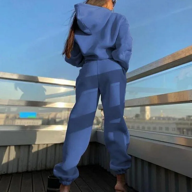Спортивный костюм женский из 2 предметов, флисовая толстовка с капюшоном и брюки с эластичным поясом, Модный повседневный спортивный костюм, осень 2021