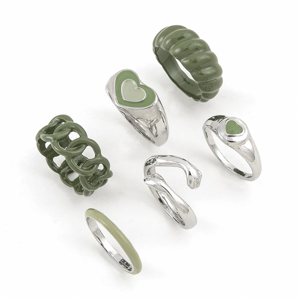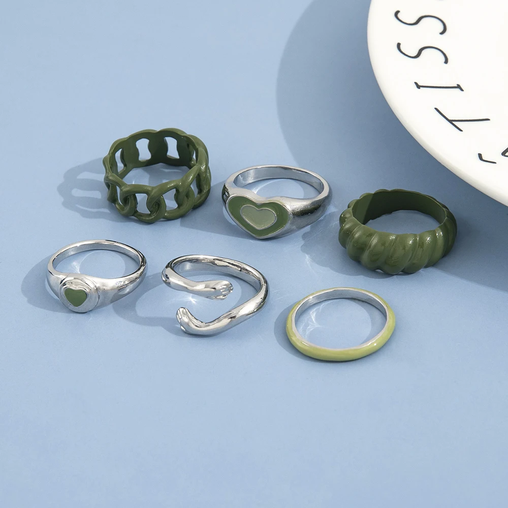 Sindlan 6 шт. в стиле панк, серебряный цвет, фотообои для женщин, Kpop, зеленое сердце, очень странные дела, парные эстетические, 2021, трендовые украшения Anillo