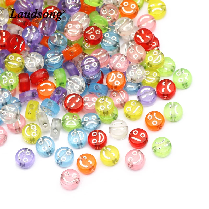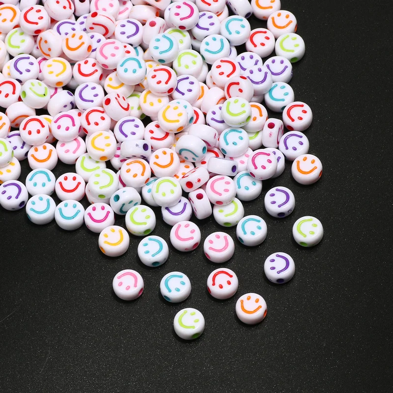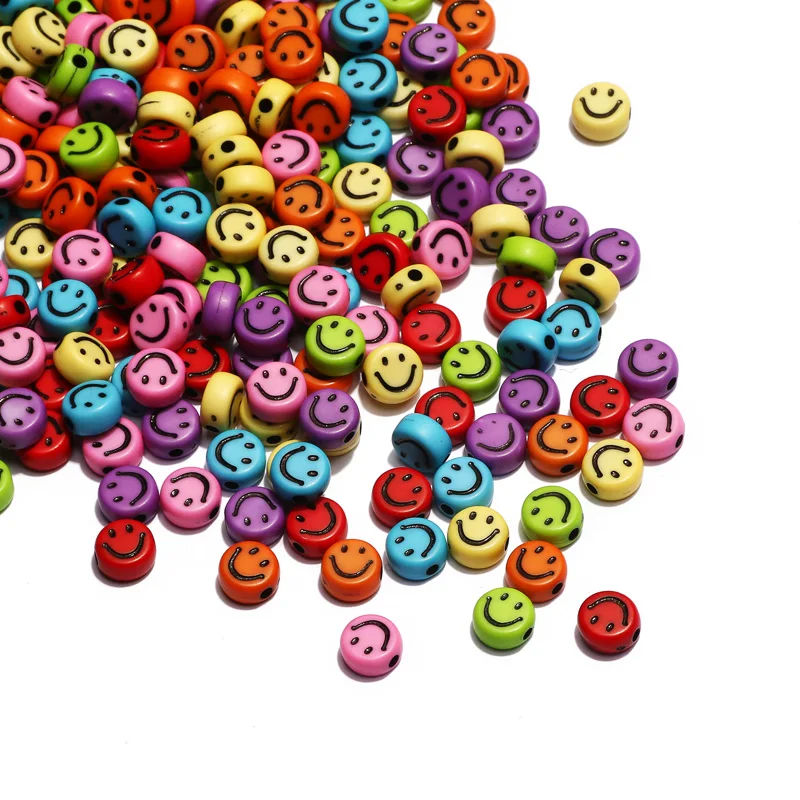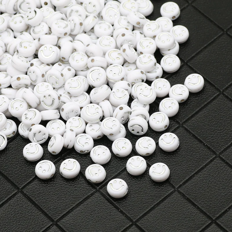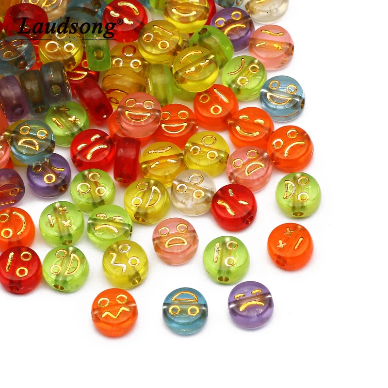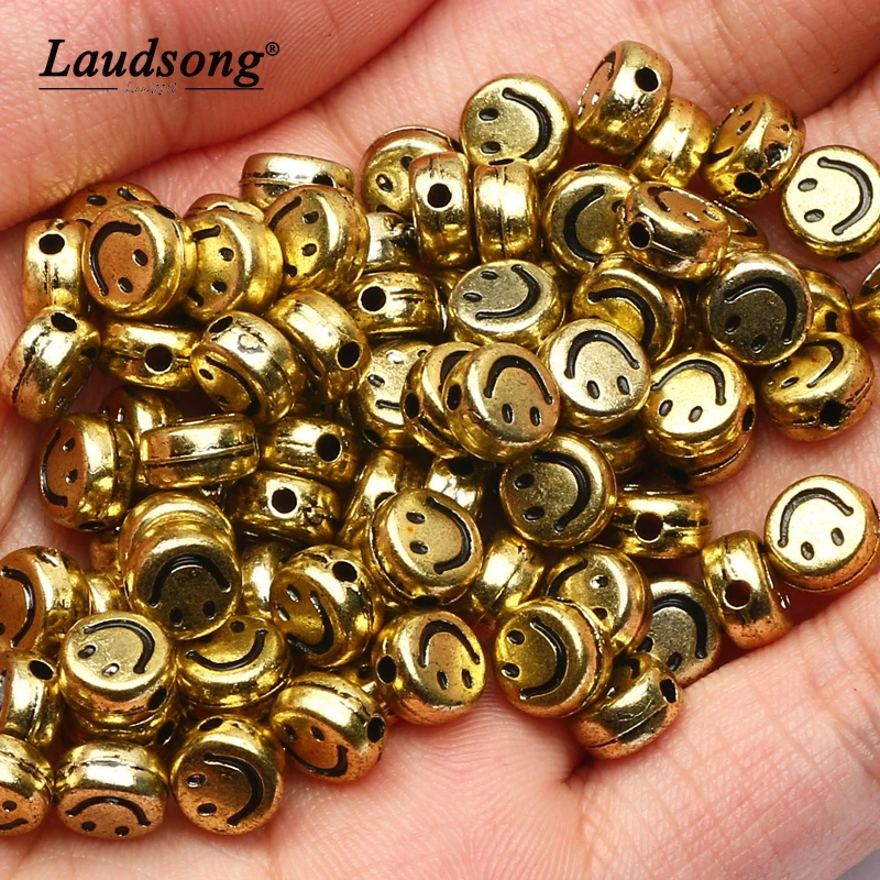 Акриловые бусины 4x7 мм, золотистые круглые бусины со смайликом, принадлежности для изготовления ювелирных изделий сделай сам, аксессуары для ожерелий и браслетов ручной работы