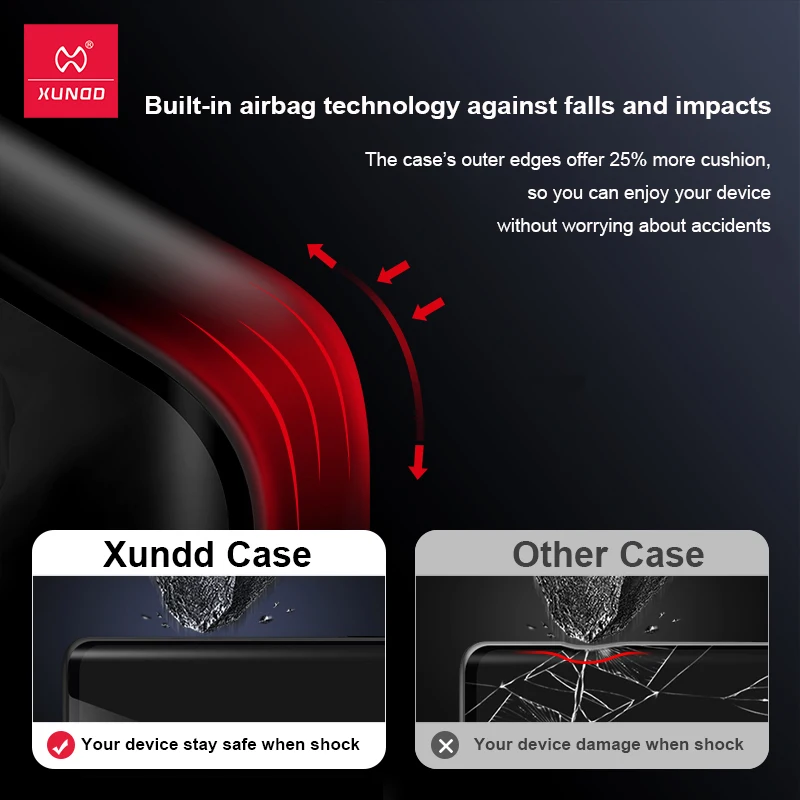 Технология подушки безопасности сопряжена с 0,8 мм поднятыми краями, которые обеспечивают очень необходимую защиту ваших камер и экрана от царапин. Получите дополнительное спокойствие при размещении телефона на различных поверхностях, таких как стол или бардачок.