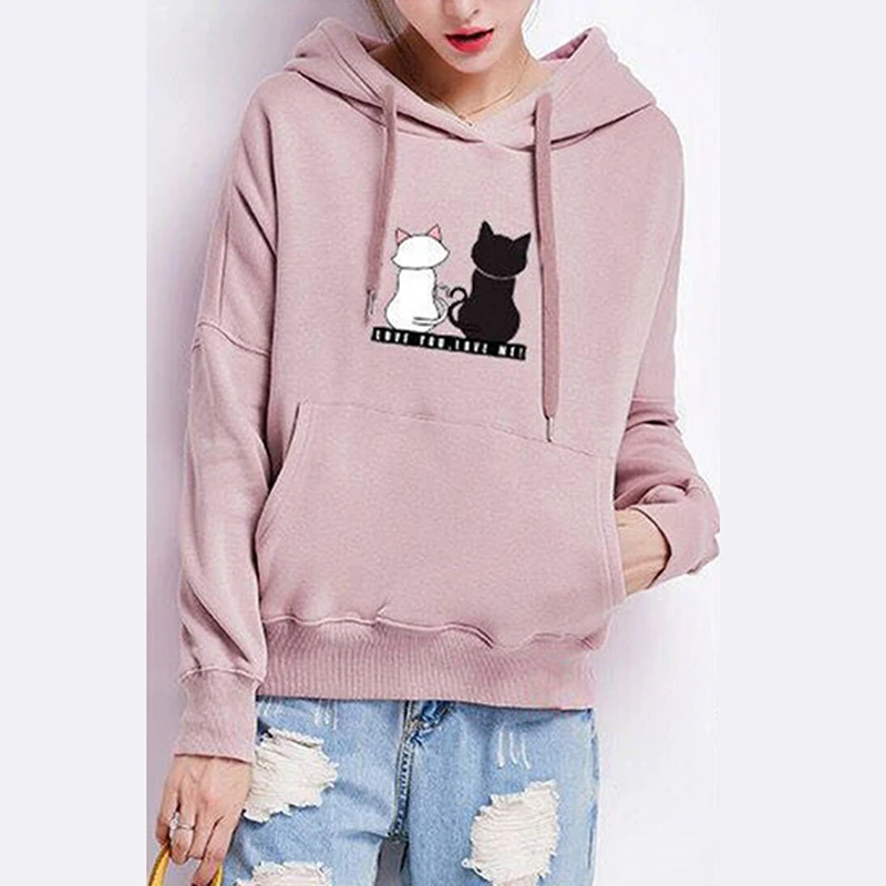 Зимний пуловер, свитшоты, Женская кошачья Милая Женская Толстовка С...