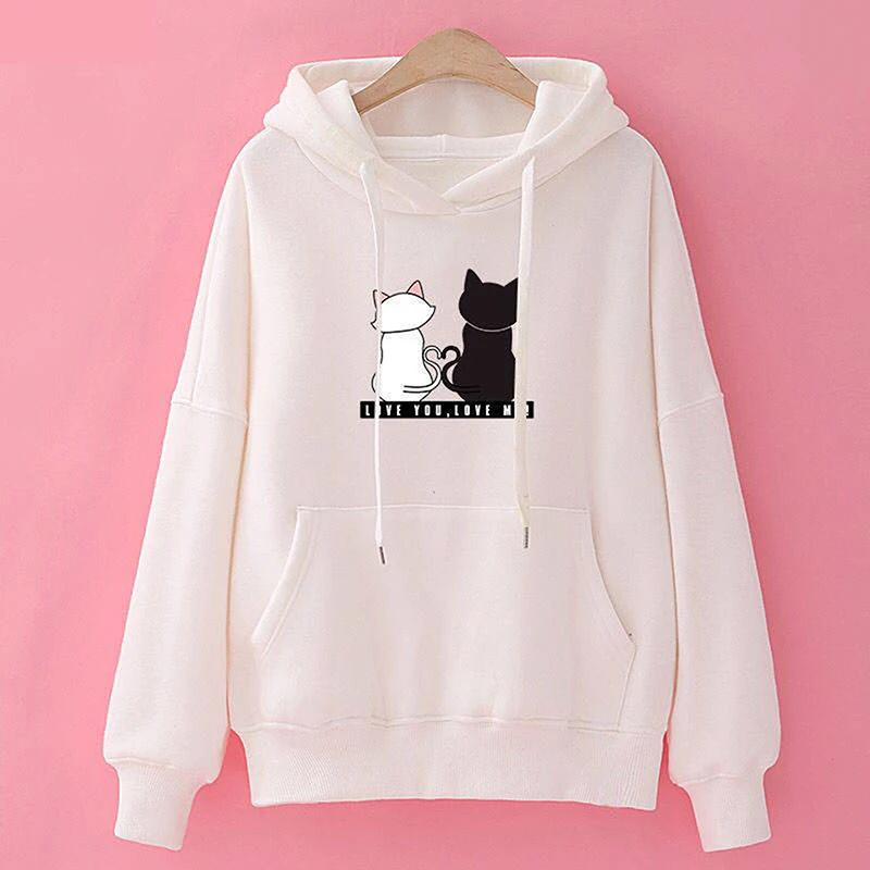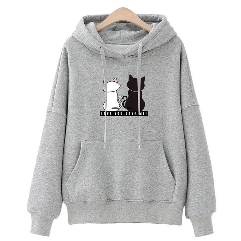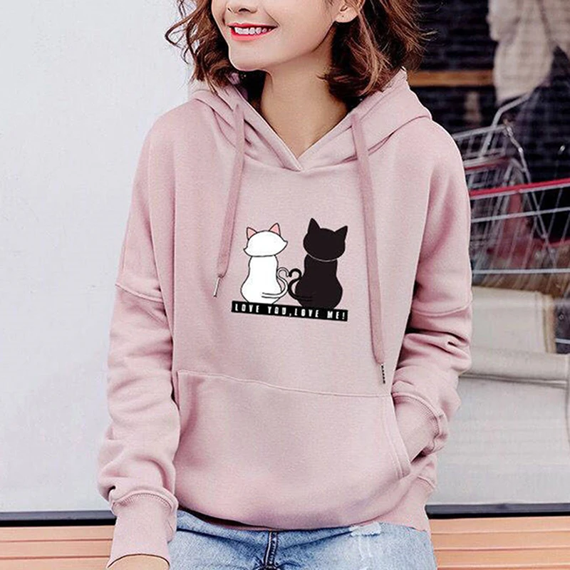 Женская уличная толстовка с капюшоном, осенняя Толстовка с длинным рукавом Harajuku, толстовка с милым принтом кота, Женская Толстовка Sudadera Mujer