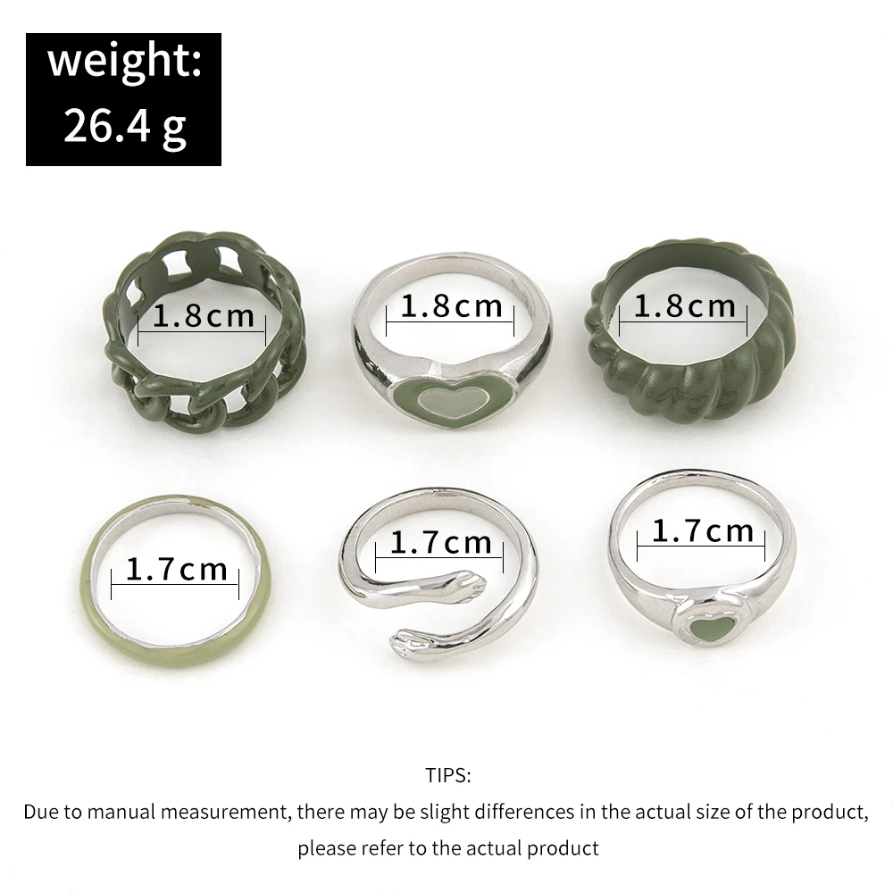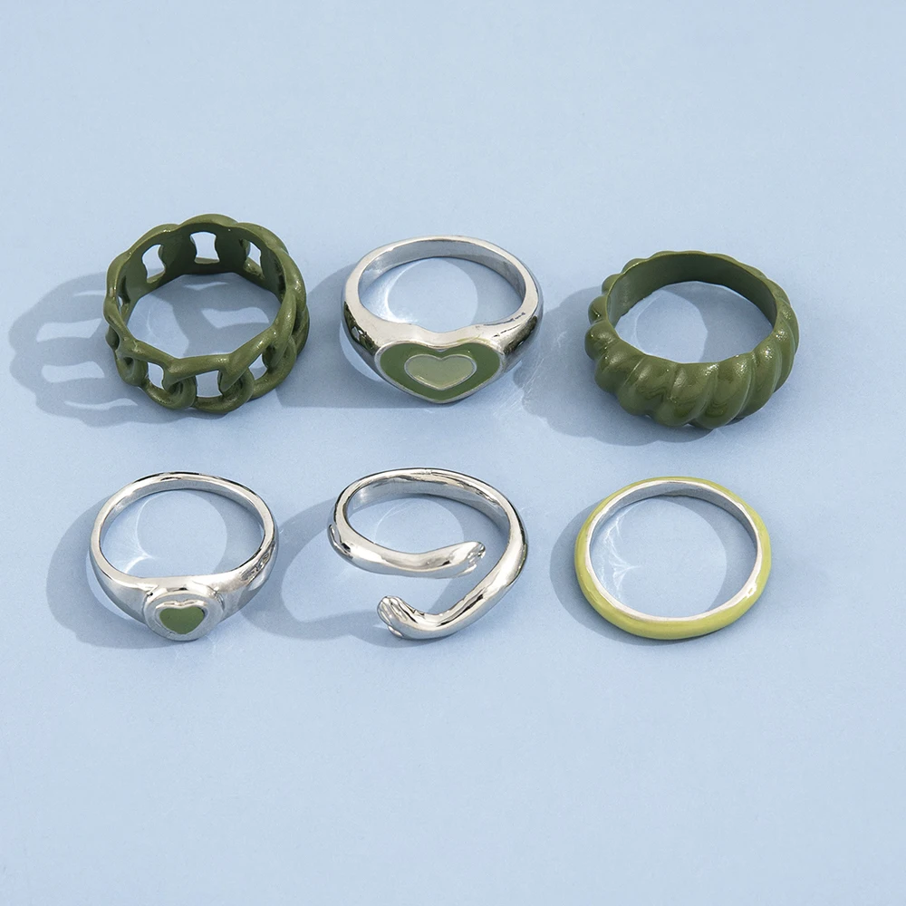 Кольца Aprilwell в виде сердца для женщин, 6 шт., металлические серебряные кольца в стиле панк, 2021, трендовые готические волнистые кольца Y2k, ювелирные изделия, подарок, уличная одежда для электронной девушки