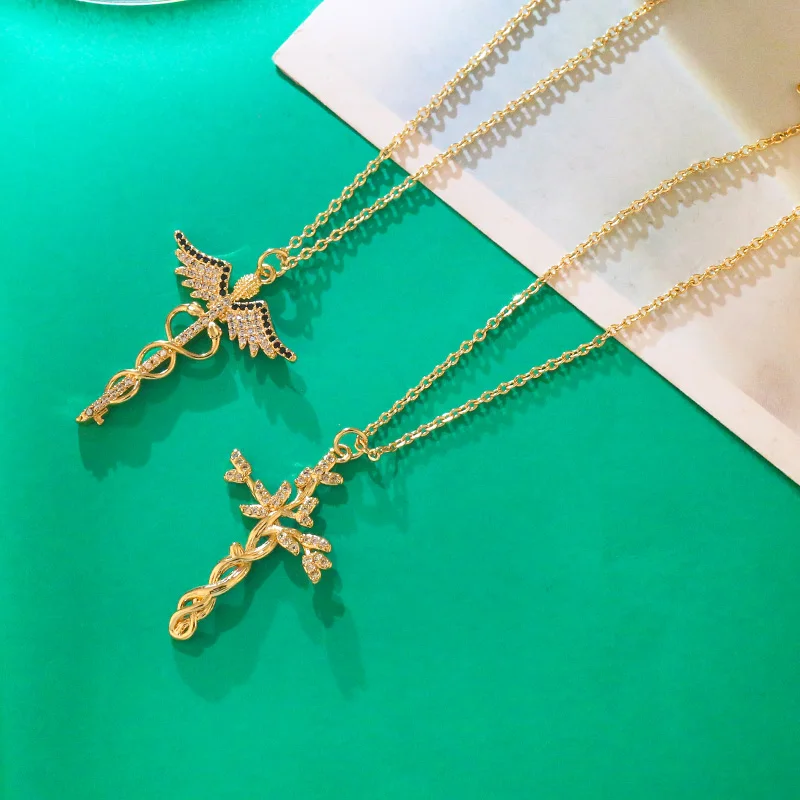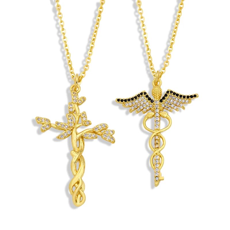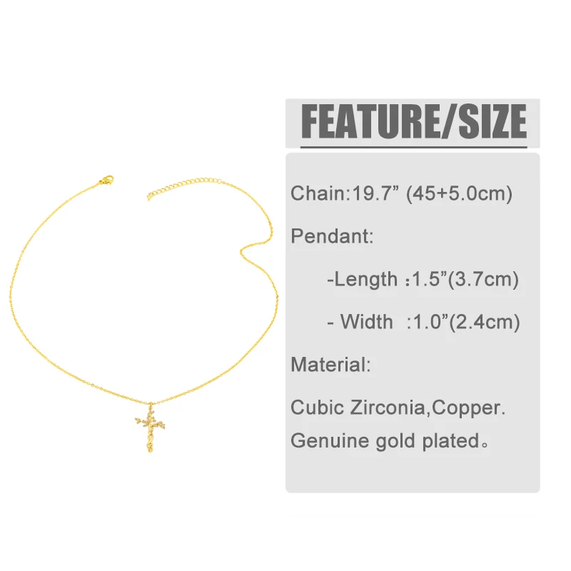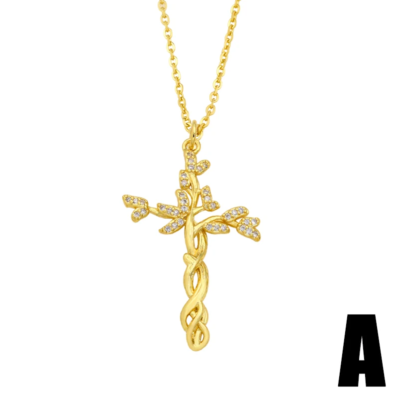 Цепочка с подвеской-крестом nkey10 женская, короткое ожерелье золотистого цвета с белым камнем и фианитом, христианская бижутерия