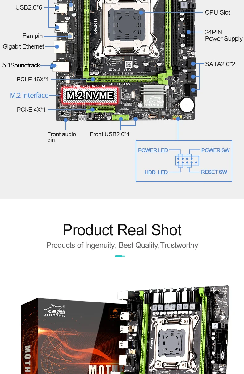 Общая информацияЧасть: Jingsha X79M-S 2,0Чип: Q67/H67/Q65/Z68 или другие, мы отправим товар наугадОсобенности:NVME M.2 высокоскоростной интерфейс4 * слот DDR3 RAM, поддержка 64 ГБЦП: серия LGA 2011 E5-V1/V2Форм-фактор: M-ATX 220 мм x 190 ммПамять: 4 * DDR3 слотаМаксимальная емкость оперативной памяти: 64 ГБГрафик:1 * PCI-E 1X1 * PCI-E 16XХранение: 4 * SATA2.0LAN: Airborne 1 * Realtek RTL8111F гигабитный Ethernet чипсетАудио: аудио кодек Realtek ALC662, совместим с каналом 5,1.Usb-порт: 10 * USB2.0 (usb-разъем для задней панели и средней панели)Решение блока питания: 1x8 Pin Power + 1x24 PinДругие: высокоскоростной интерфейс NVME M.2Аксессуары:1 Escudo I/O1X кабель SATA