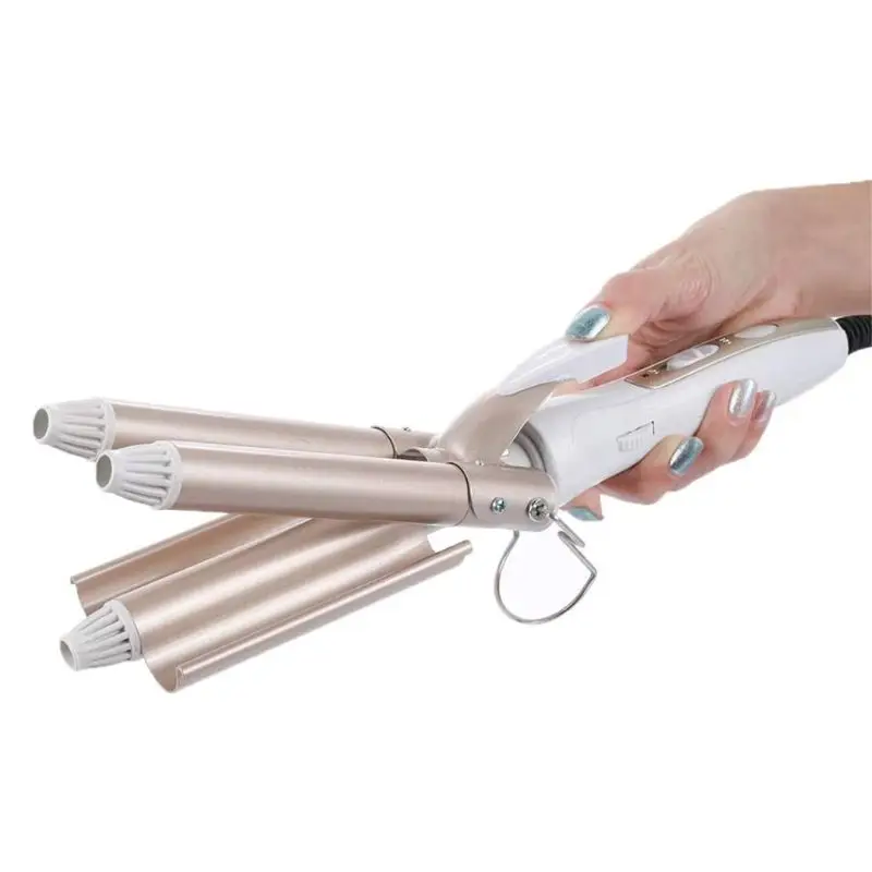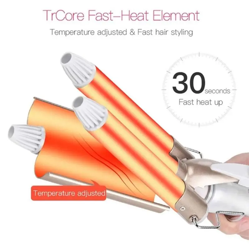 Щипцы для завивки волос с гуманным дизайном: термозащита. Температуру можно регулировать, подходит для долгосрочных результатов и всех типов волос. 3 бочка стайлеров Для волнистых волос для быстрого создания естественных локонов.