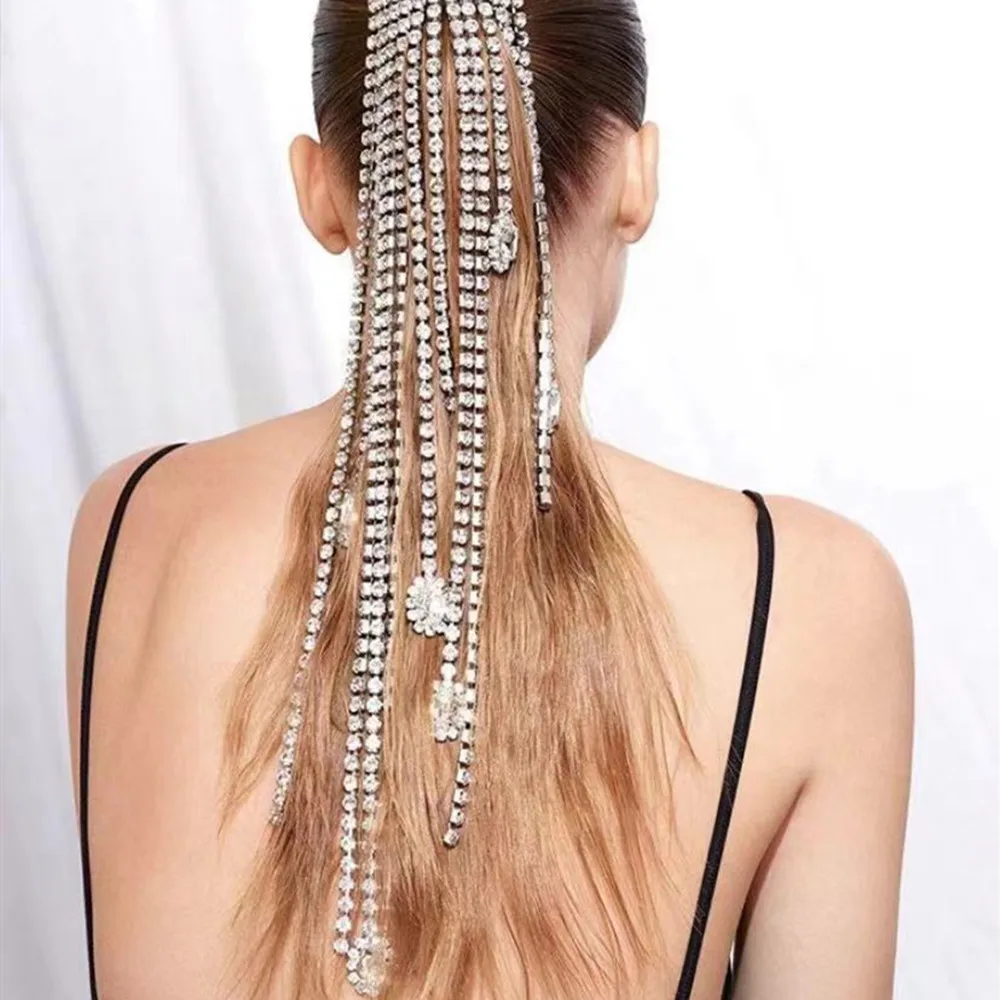 Гребень для волос Женский, с цветами, с кристаллами, Длинная кисточка из горного хрусталя