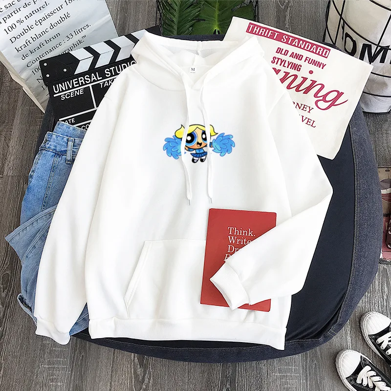 Осень/Зима для мужчин/женщин Powerpuff девушки печати плюс флисовая толстовка с принтом свободного покроя Толстовка уличная мода Harajuku Топ