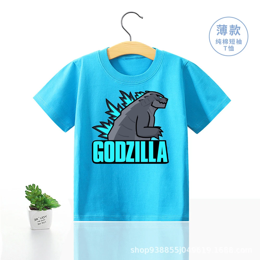 Футболка детская с коротким рукавом, из мультфильма Годзилла, для мальчиков и девочек, универсальная дышащая, подарки на день рождения, Рождество, 2021