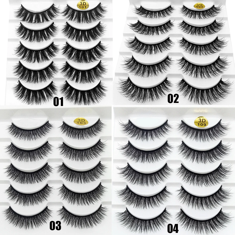 5 парнабор 3D искусственным мехом норки Мягкие Накладные ресницы то...