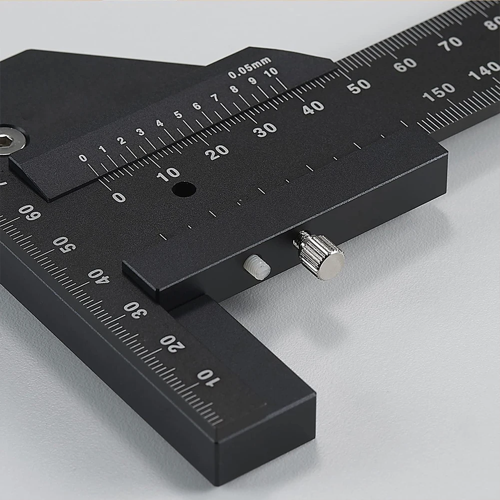 Точность-многомерный датчик обеспечивает максимальную точность маркировки, позволяя пользователям точно отмечать до самого высокого миллиметрового уровня. Червячная шкала и основная шкала предназначены для плавного скольжения в основной корпус и прикосновения к предметам. Минимальный диапазон измерения мультиманометра более точен, чем у обычных суппортов vermier, и может маркировать до 1/20 (0,05) мм около 0,019 дюймов.