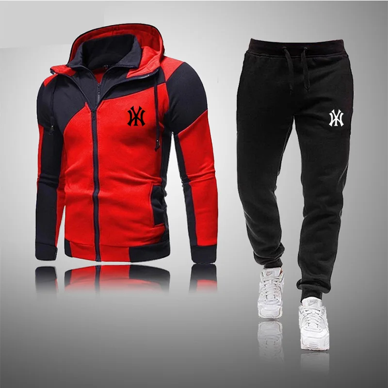 Мужской спортивный костюм из 2 предметов, кофта на молнии с капюшоном и штаны