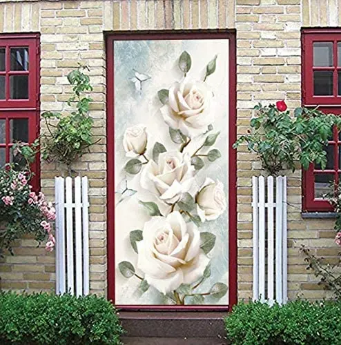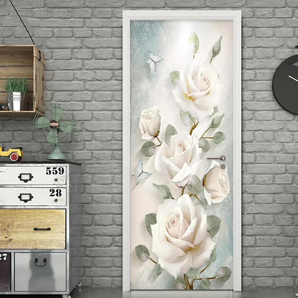 3D белые розы самоклеющиеся двери обои фрески настенные наклейки пилинг и палка двери постер для украшения дома