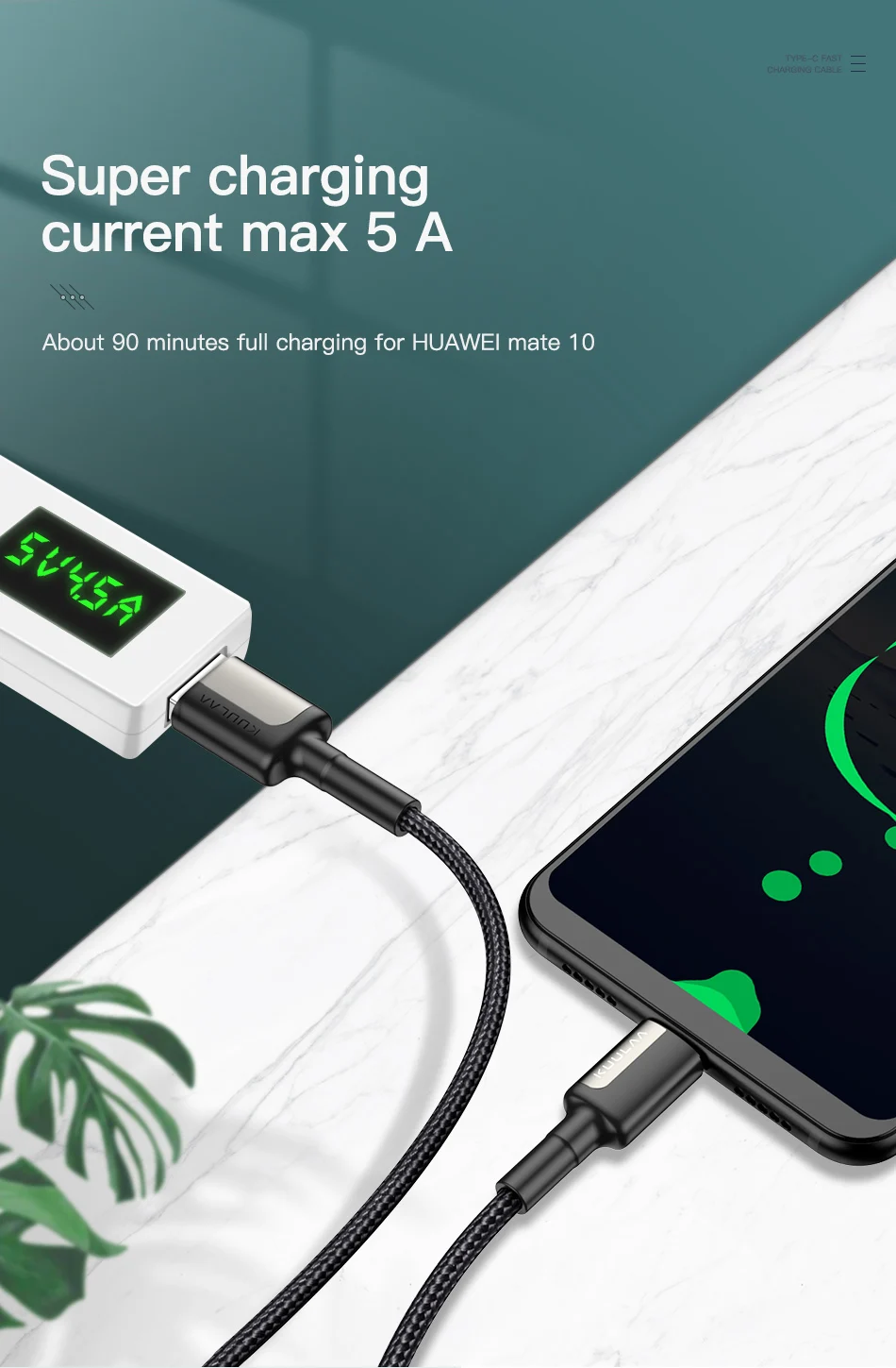 USB-кабель KUULAA 5A Supecharge Type-C для Huawei P20 P30 Mate 20 30 Pro, быстрая зарядка, USB-кабель для быстрой зарядки 3,0 типа, USB-кабель для передачи данных