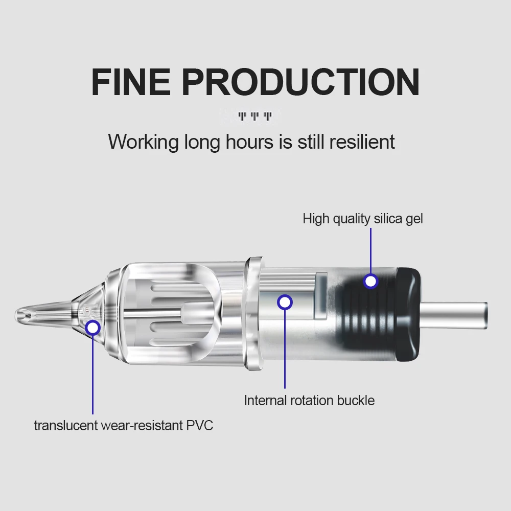 1. Иглы для татуировки картриджа изготовлены из нержавеющей стали 316 и стерилизованы на 100% и упакованы в блистерную упаковку.2. Одноразовая профессиональная игла для татуировок картриджи с мембранной стерилизованной посылка, так что чернила татуировки не будут погружаться обратно в трубы.3. Профессиональные иглы для татуировки безвредны, стерилизованы из нержавеющей стали для ежедневного использования.4. Эти иглы картриджа совместимы с картриджными тату-машинами и захватами.