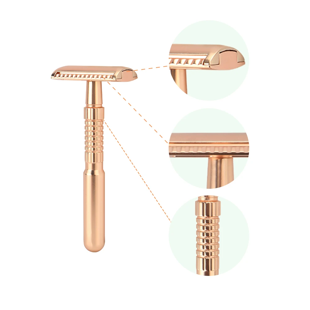Золотая Безопасная бритва для бритья и удаления волос для женщин многоразовая металлическая ручная бритва с хлопковой сумкой для путешествий и 10 лезвиями
