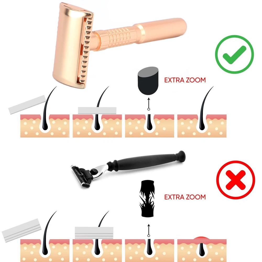 Вам не нужно тратиться целое состояние, чтобы получить отличное бритье. Наши бритвы подходят для всех лезвий с двойными краями, которые являются частью стоимости по сравнению с пластиковыми лезвиями для бритвы cartidge. Это заплатит за себя.
