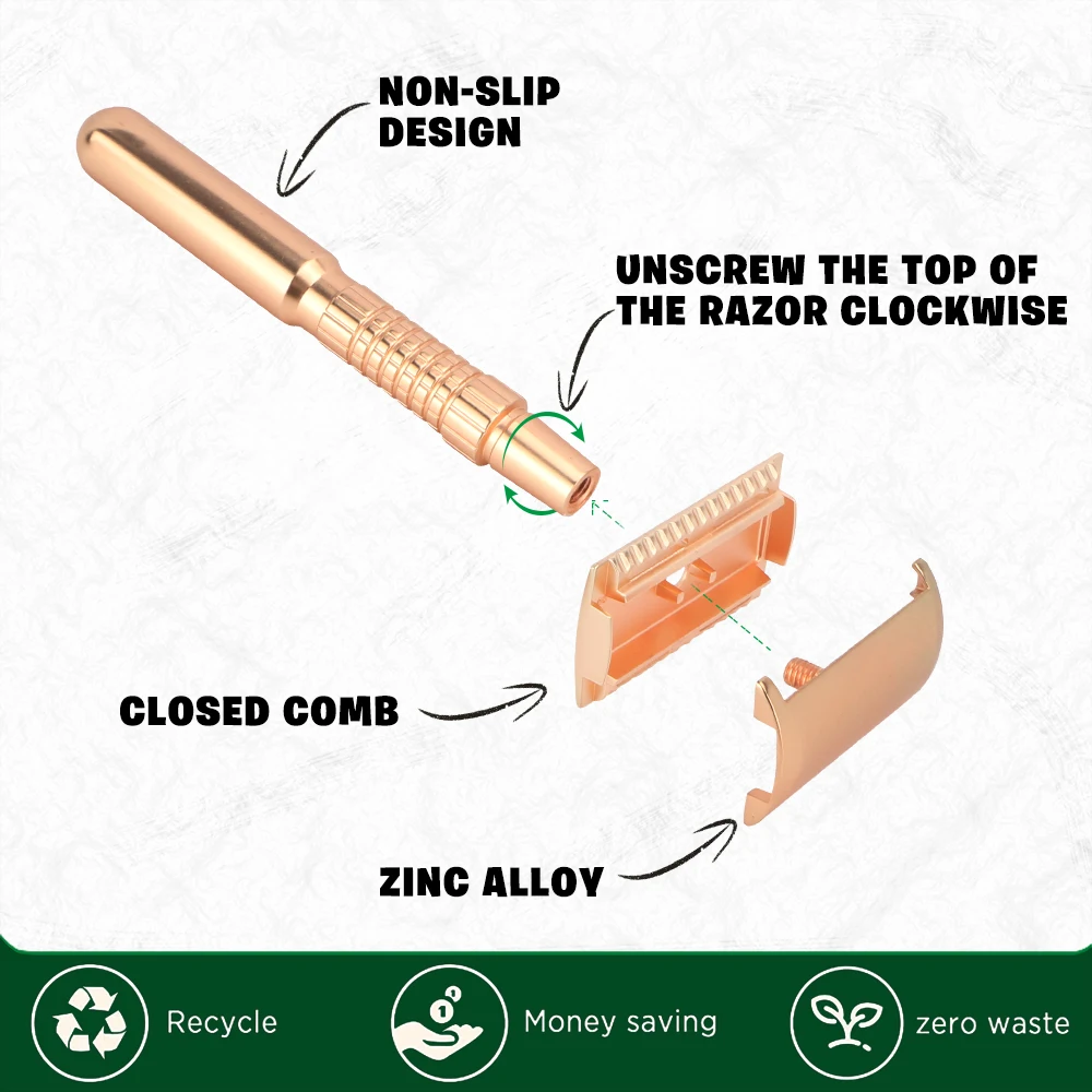 ⌘ Важно хорошее качество лезвия. Для идеального экологически безопасного бритья мы рекомендуем Безопасные лезвия бритвы с платиновым покрытием.