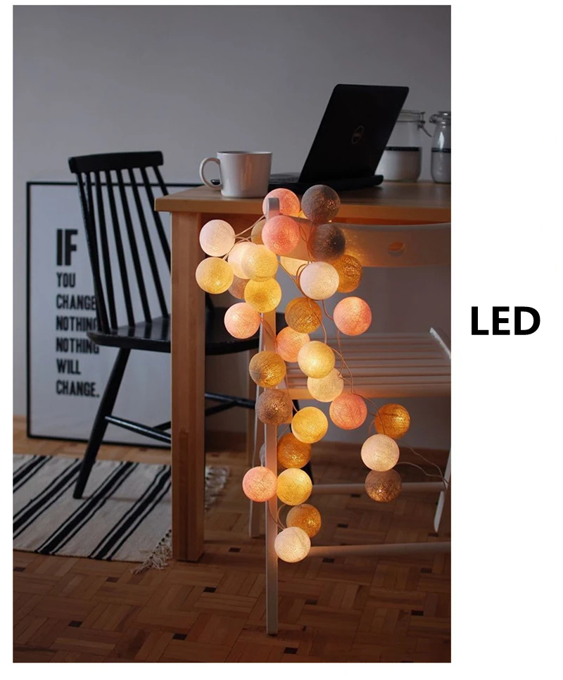 Гирлянда с хлопковыми шариками, Рождественская сказочная осветительная цепочка для улицы, праздника, свадьбы, Рождества, вечеринки, украшение для дома, 2 м3 м